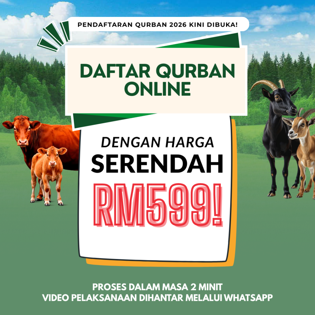 Dengan RM599 sahaja, anda sudah menunaikan ibadah Qurban dengan sempurna. Dan lebih daripada itu, anda memberi manfaat kepada mereka yang benar-benar memerlukan.